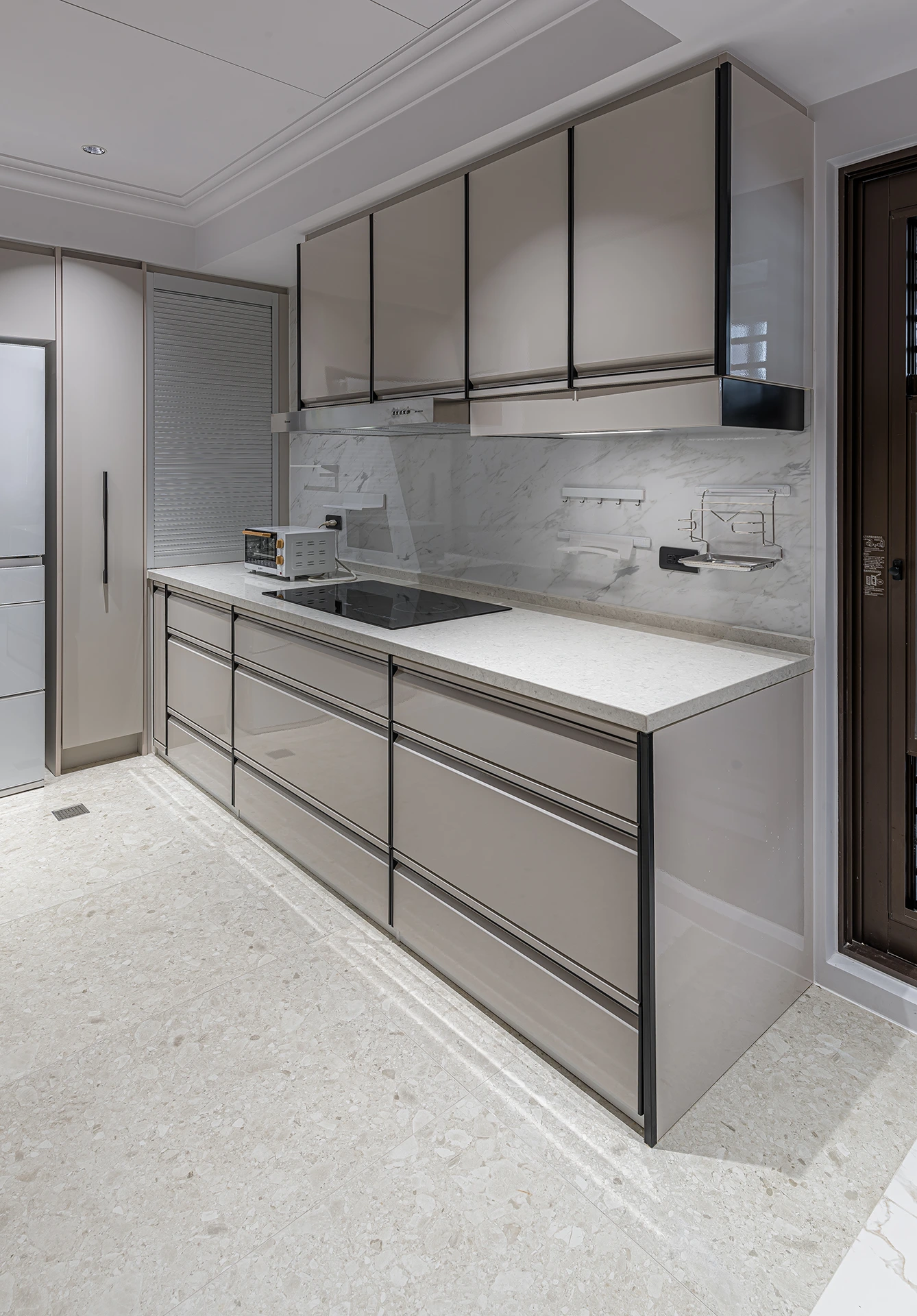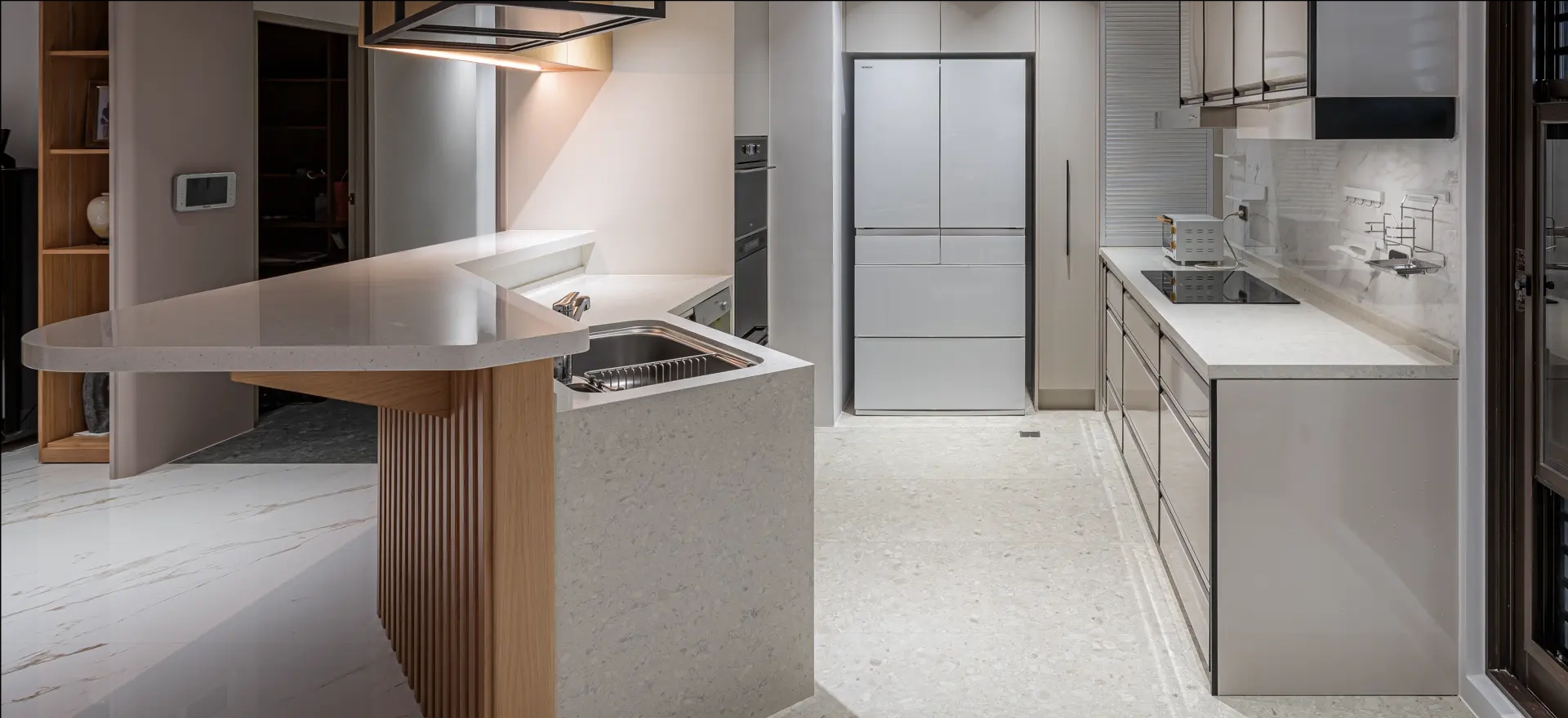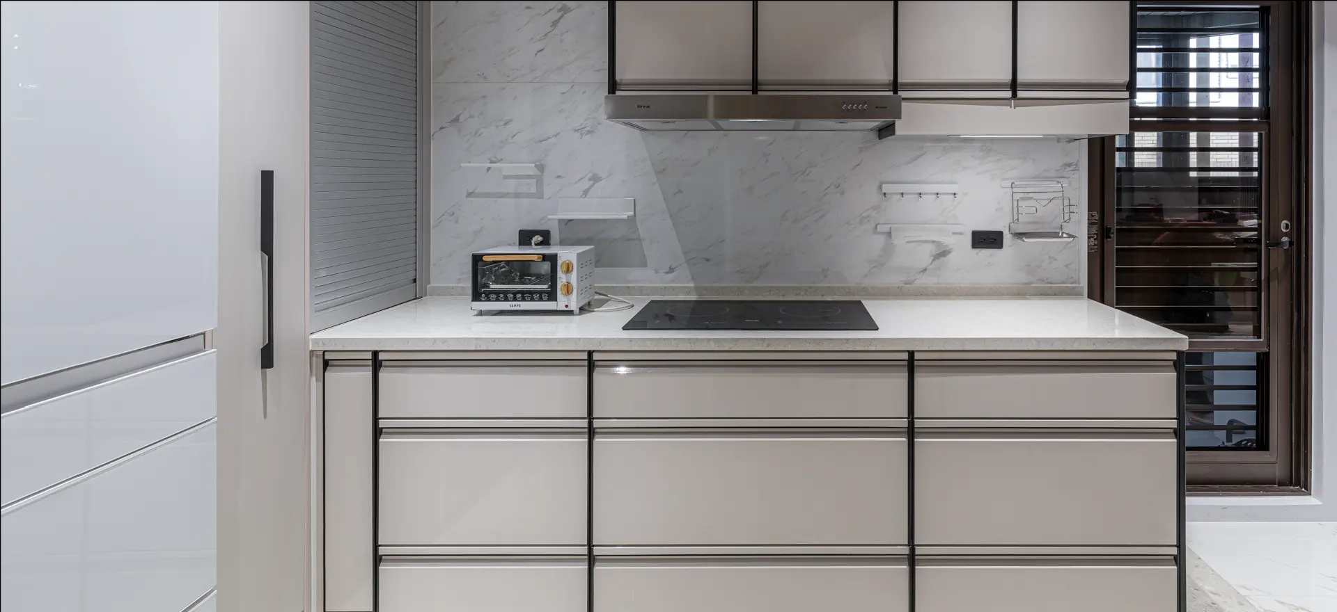 這是一場關於規格與客製的完美平衡。以白色、奶油色與溫潤木紋為基底,透過幾何線條重新定義餐廚空間的流動感,將純淨的日系現代美學,帶進日常料理時光。