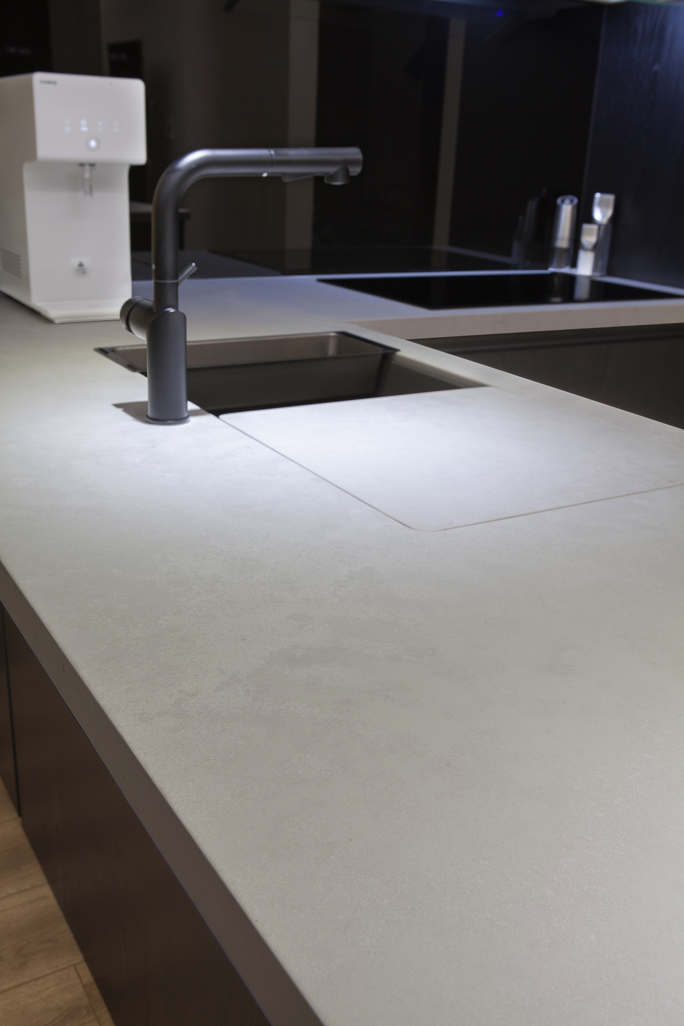 「愷薩金石Caesarstone」石英石檯面,除了耐高溫,不易髒且耐刮劃,使用溫和的清潔劑或肥皂水即可輕鬆清潔,並符合美國國家衛生基金會NSF認證,不含化學塗層,安全無毒,可以直接把食材放在檯面,健康安全。