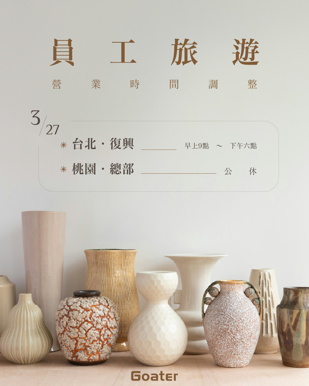 📅 門市營業時間公告: